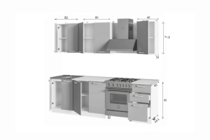 Высота нижних шкафов: 850 мм