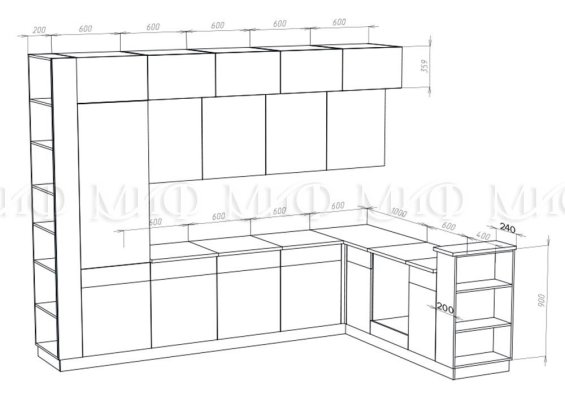 Высота верхних шкафов: 1078 мм